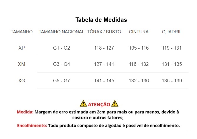 Antes de comprar, cheque as tabela de medidas: